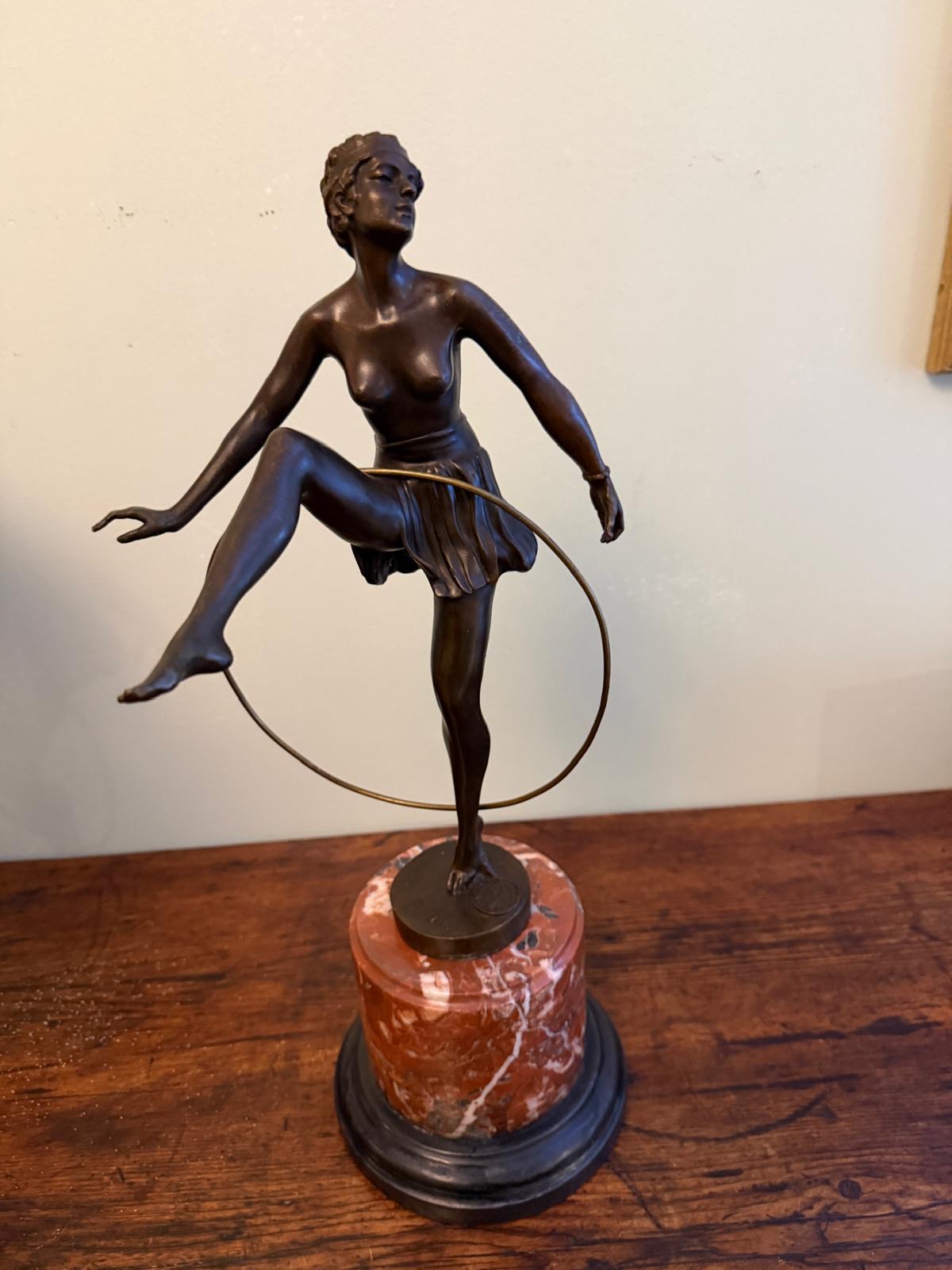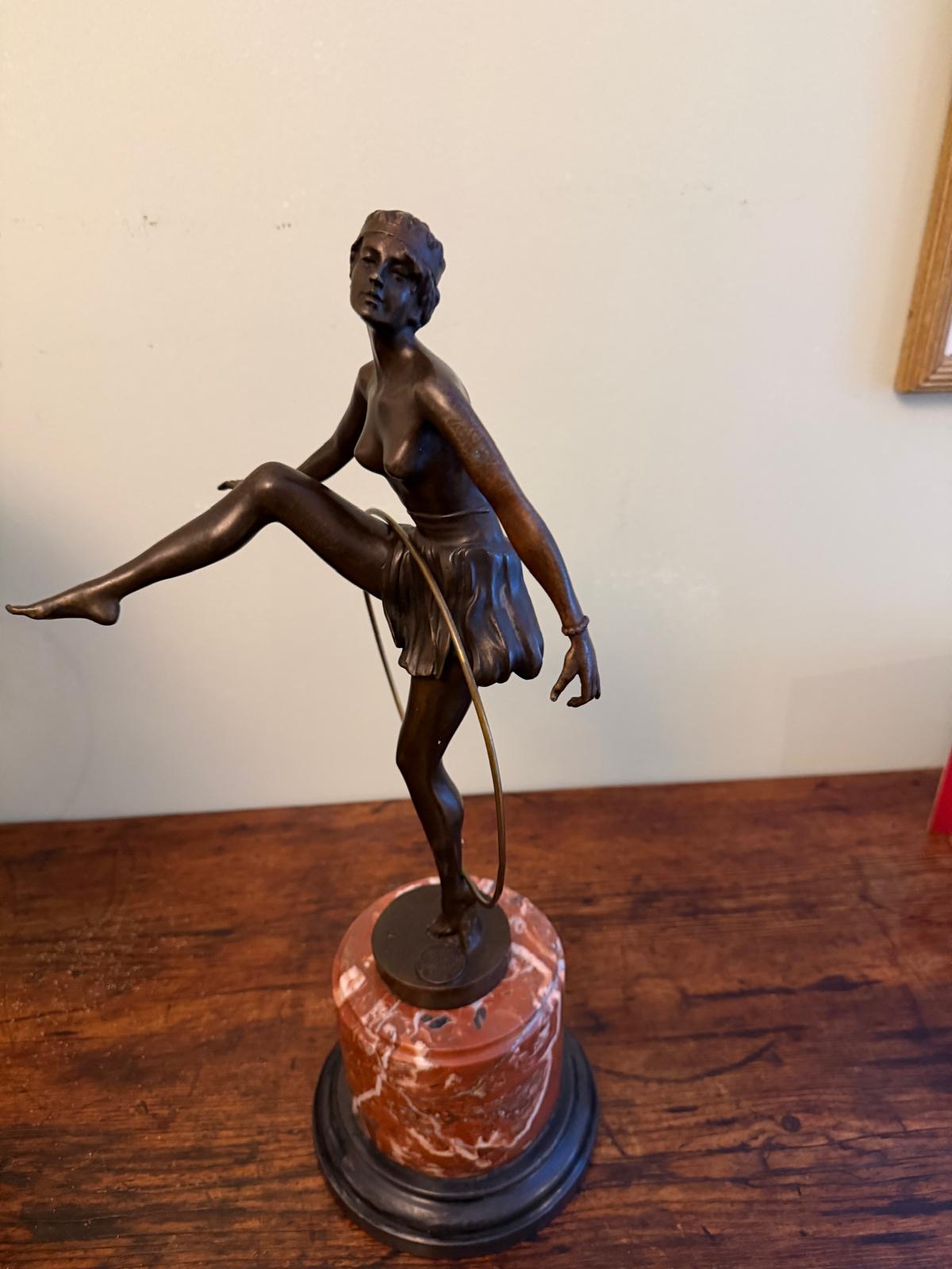 Stands at 19 inches on a circular, heavy, marble base.