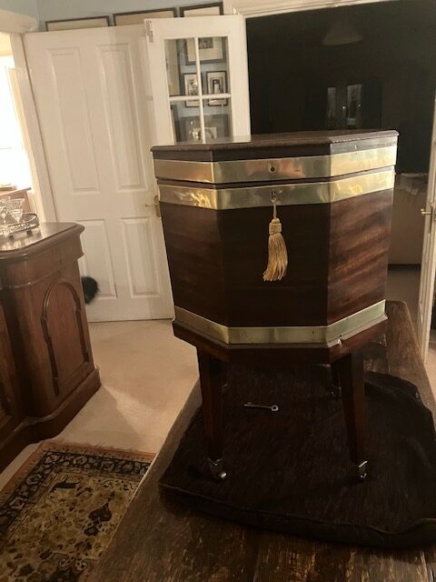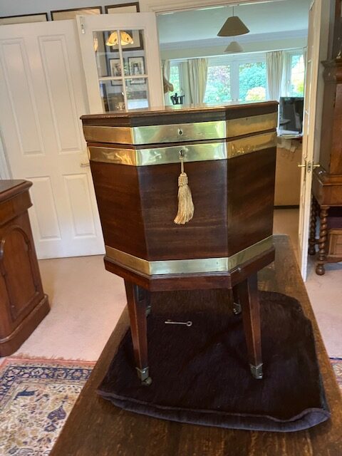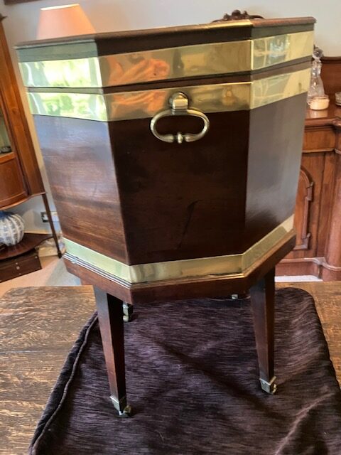 A gorgeous mahogany brass bound wine cooler circa 1860